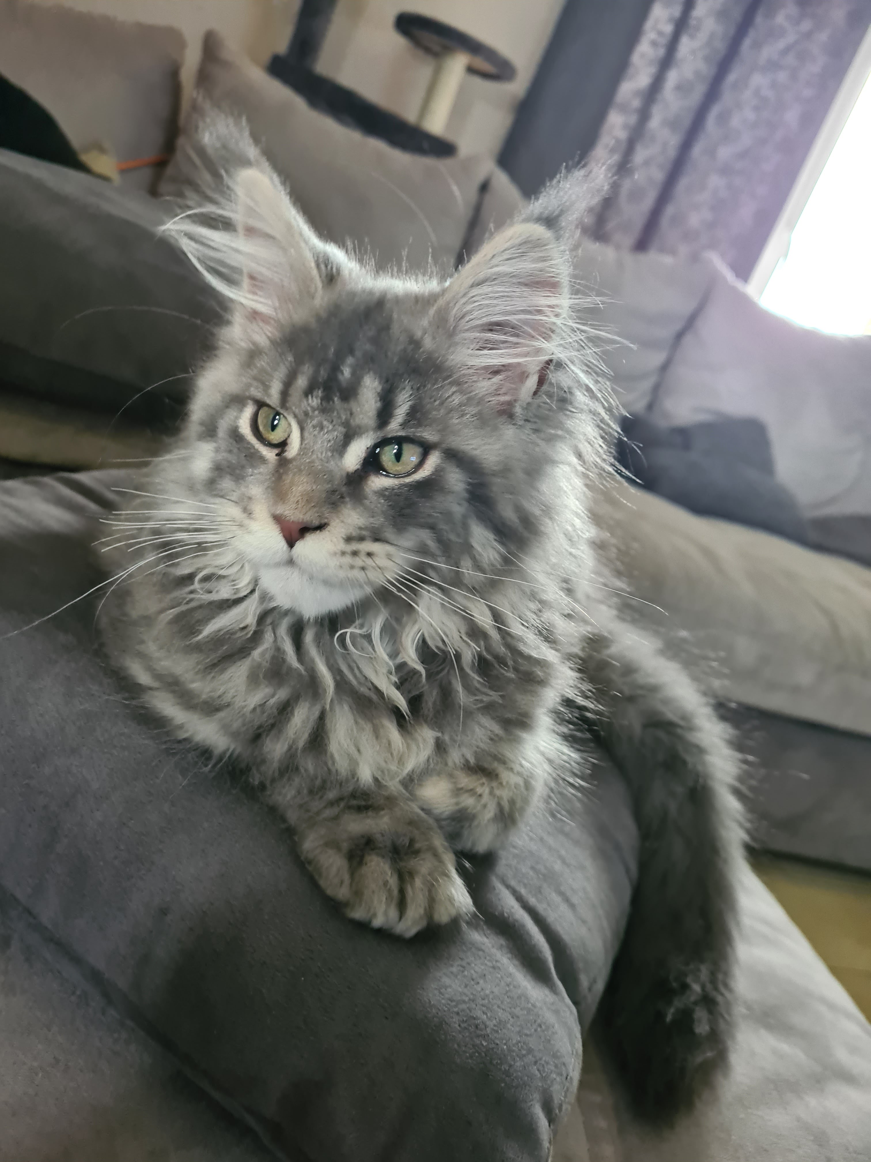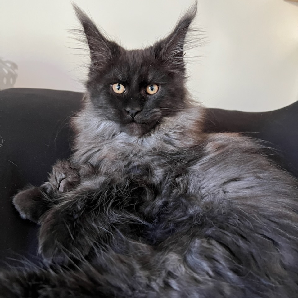 Nous voulions depuis longtemps acquérir un Mainecoon. Nous avons eu la chance de trouver cette Chatterie où les chats sont chouchoutés. Ils sont élevés au sein de la famille. Nous avons pris ce petit Chaton Mâle qui fait notre bonheur. Les chatons sont suivis avec rigueur par l'éleveuse qui est d'une grande gentillesse. Merci encore.